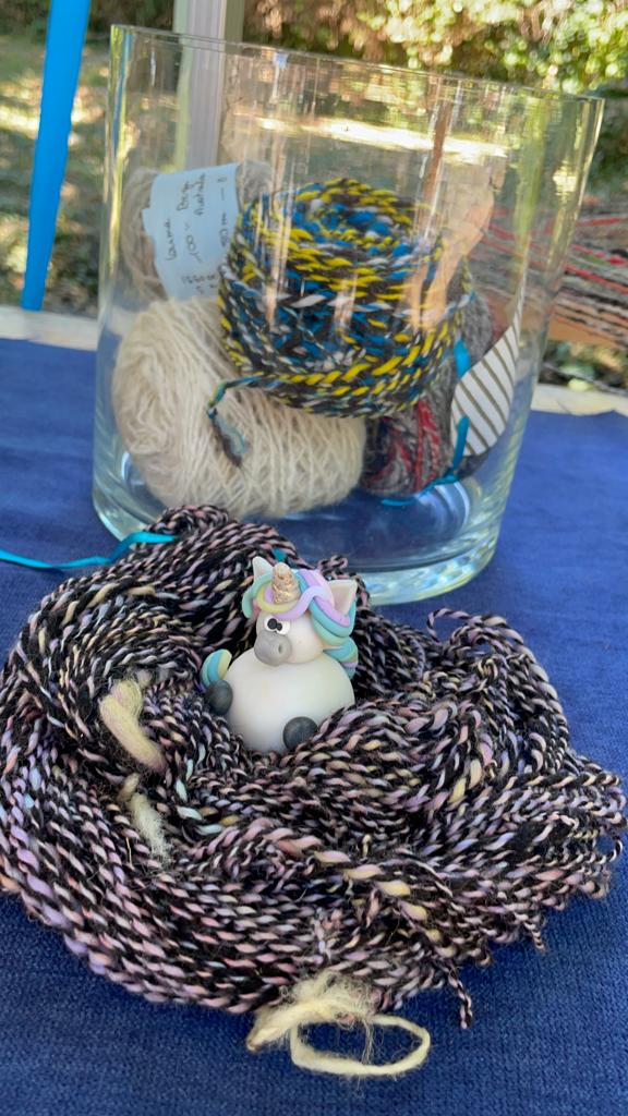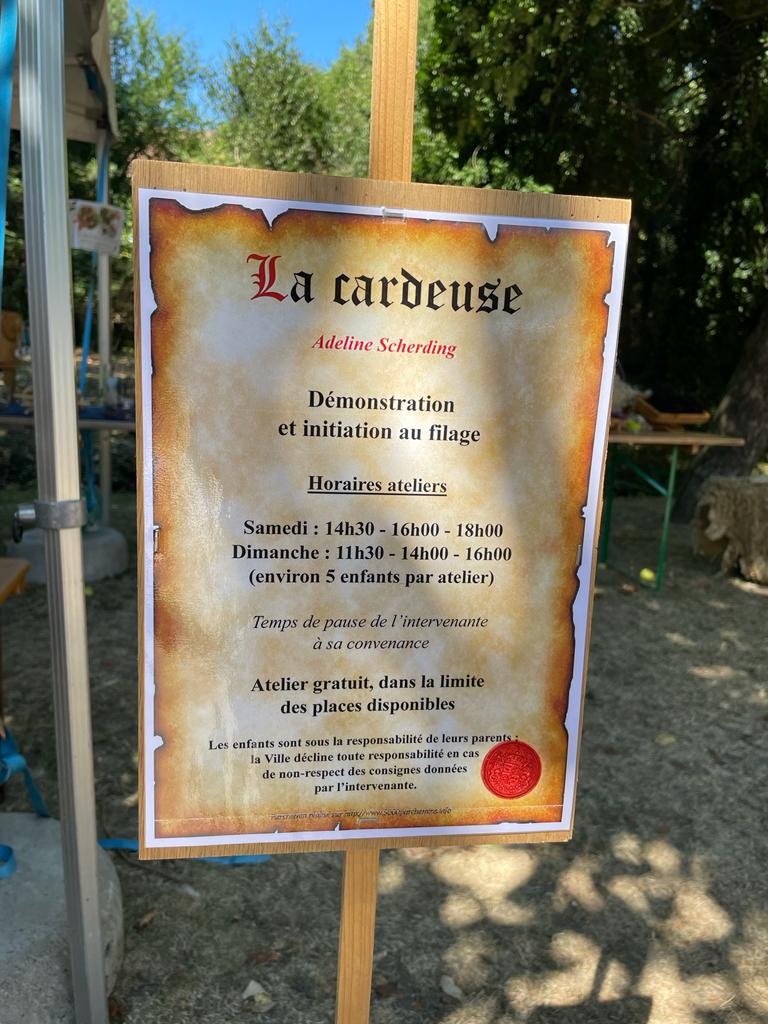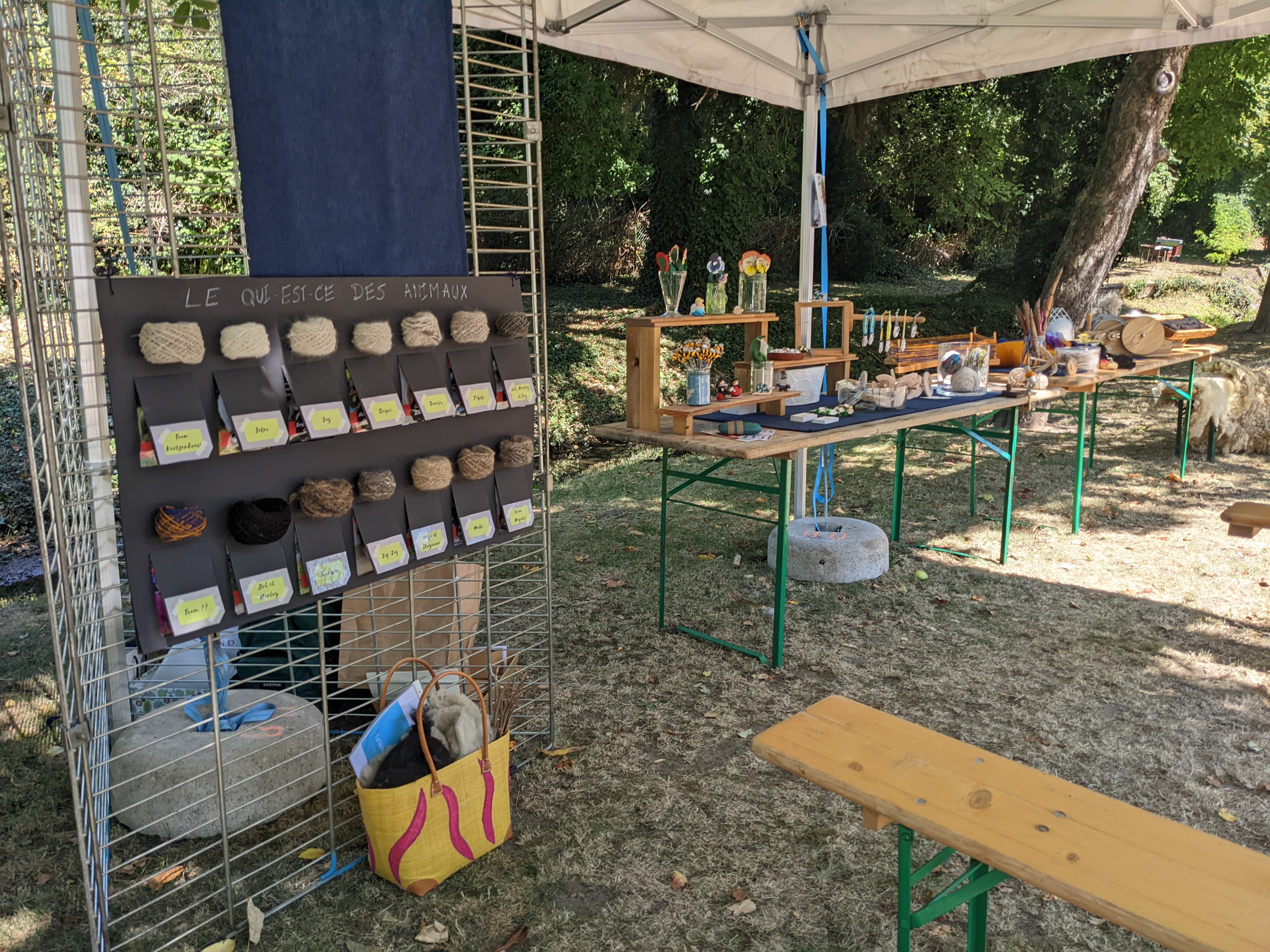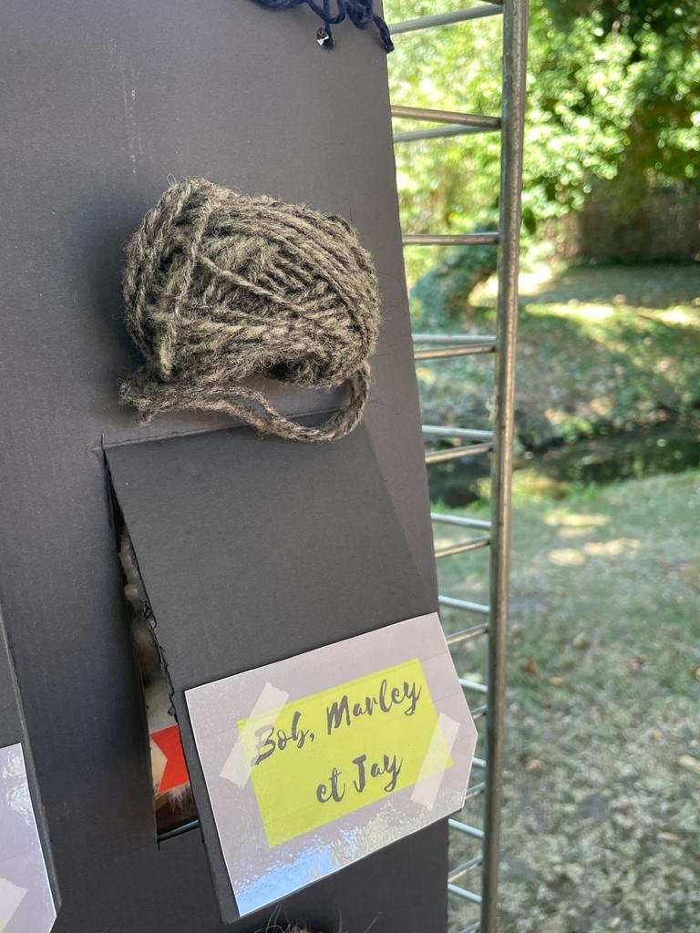 Et un immense merci à Marie (qui se reconnaitra) pour son soutien sans faille dans la préparation de cette exposition, dans la recherche des fibres animales, dans l’aide au filage des fibres et création des pelotes du tableau pédagogique ; à André pour ses créations de porte-clefs en bois, souvenirs de l’atelier d’initiation de filage de laine ; à mon Dany pour la création des fuseaux à fusaïole basse, enfin, à tout mon entourage qui m’ont soutenu par leur présence et leur passage sur le stand.